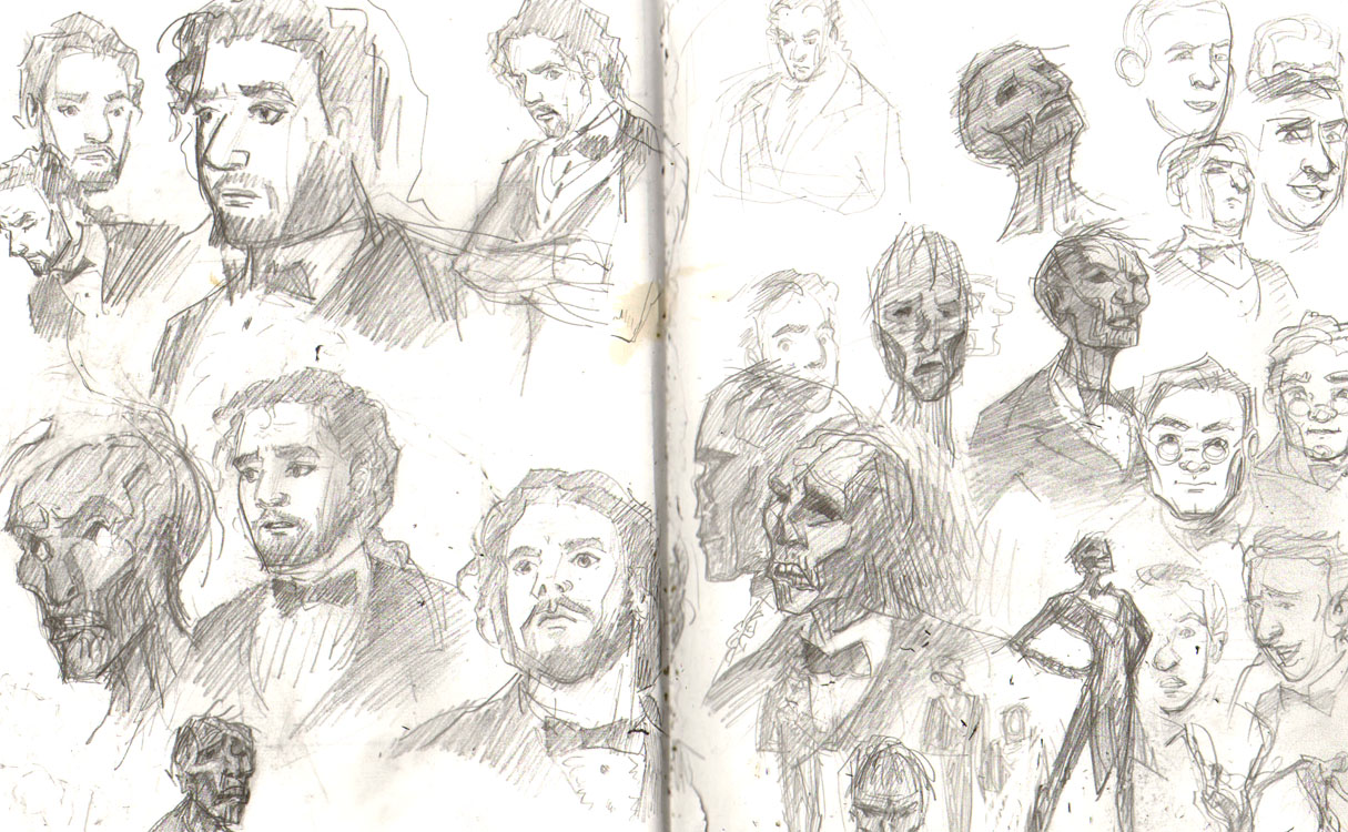 SO, of course, a huge part of getting this adaptation perfect is getting the look of the characters just right. For me, this involves a lot of face drawings. I'm definitely happy and comfortable with how the characters are looking and that can only come from having drawn those faces repeatedly. I think the final sketches are always fun to look at, even the ones that aren't right. So here's a bunch of faces: